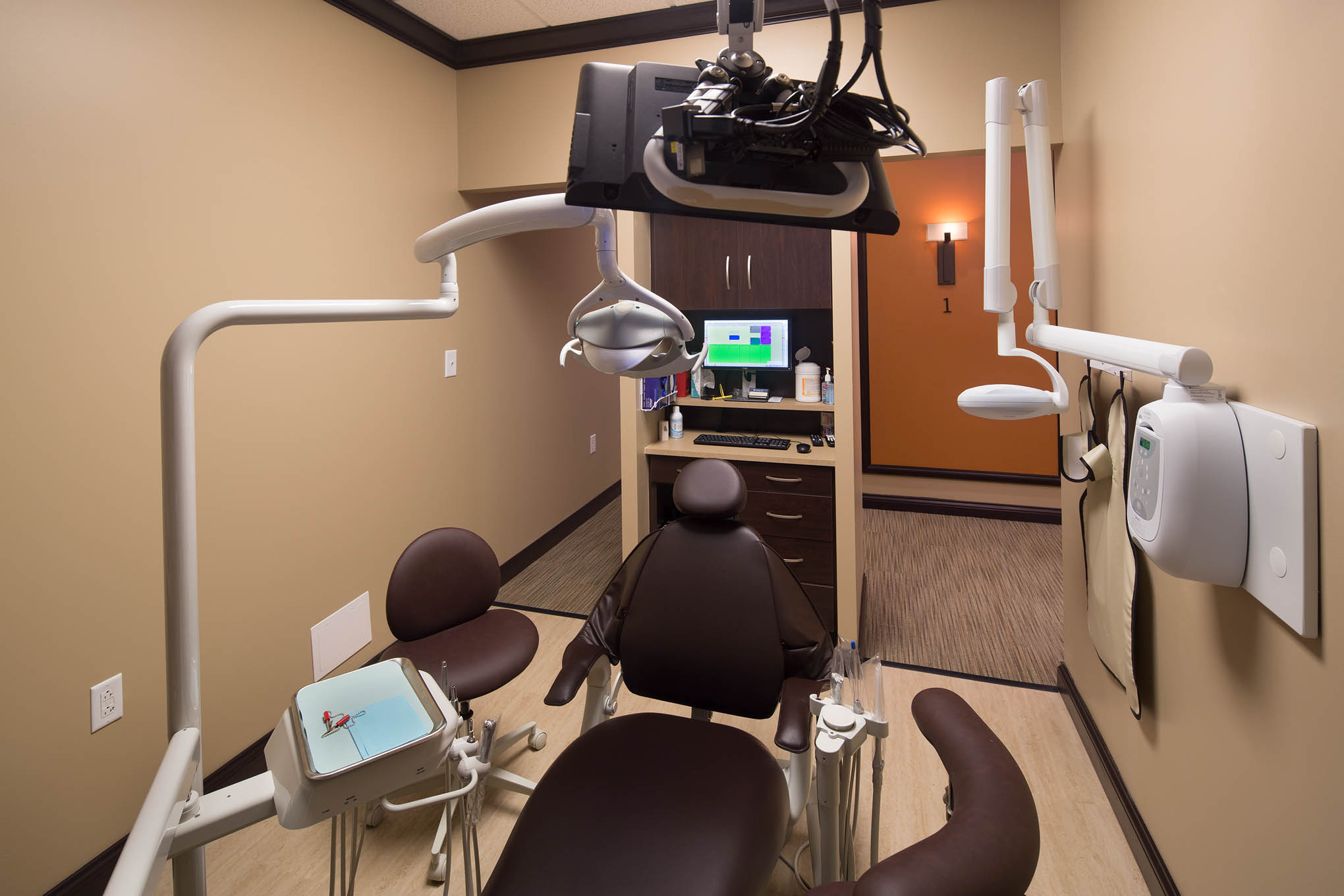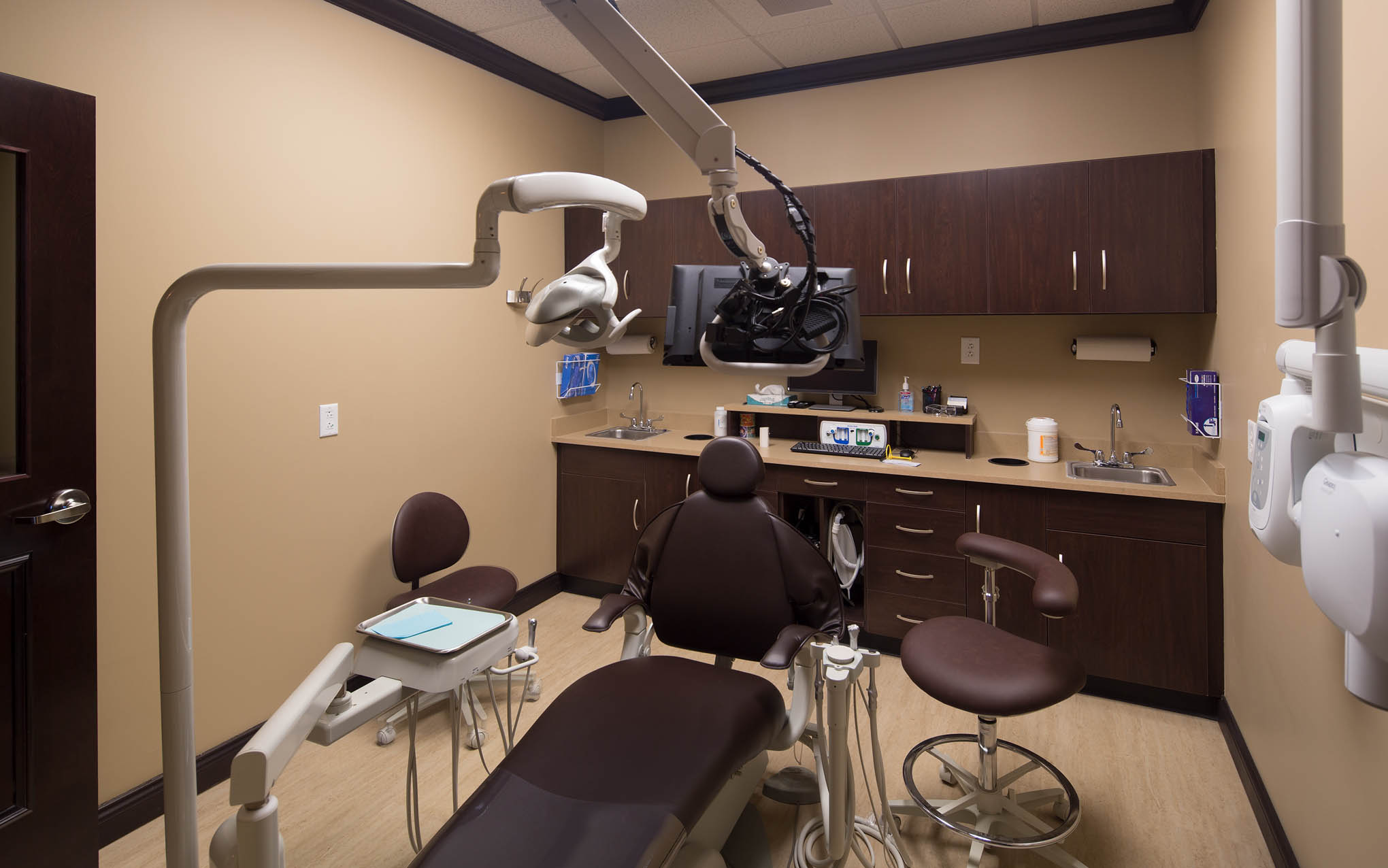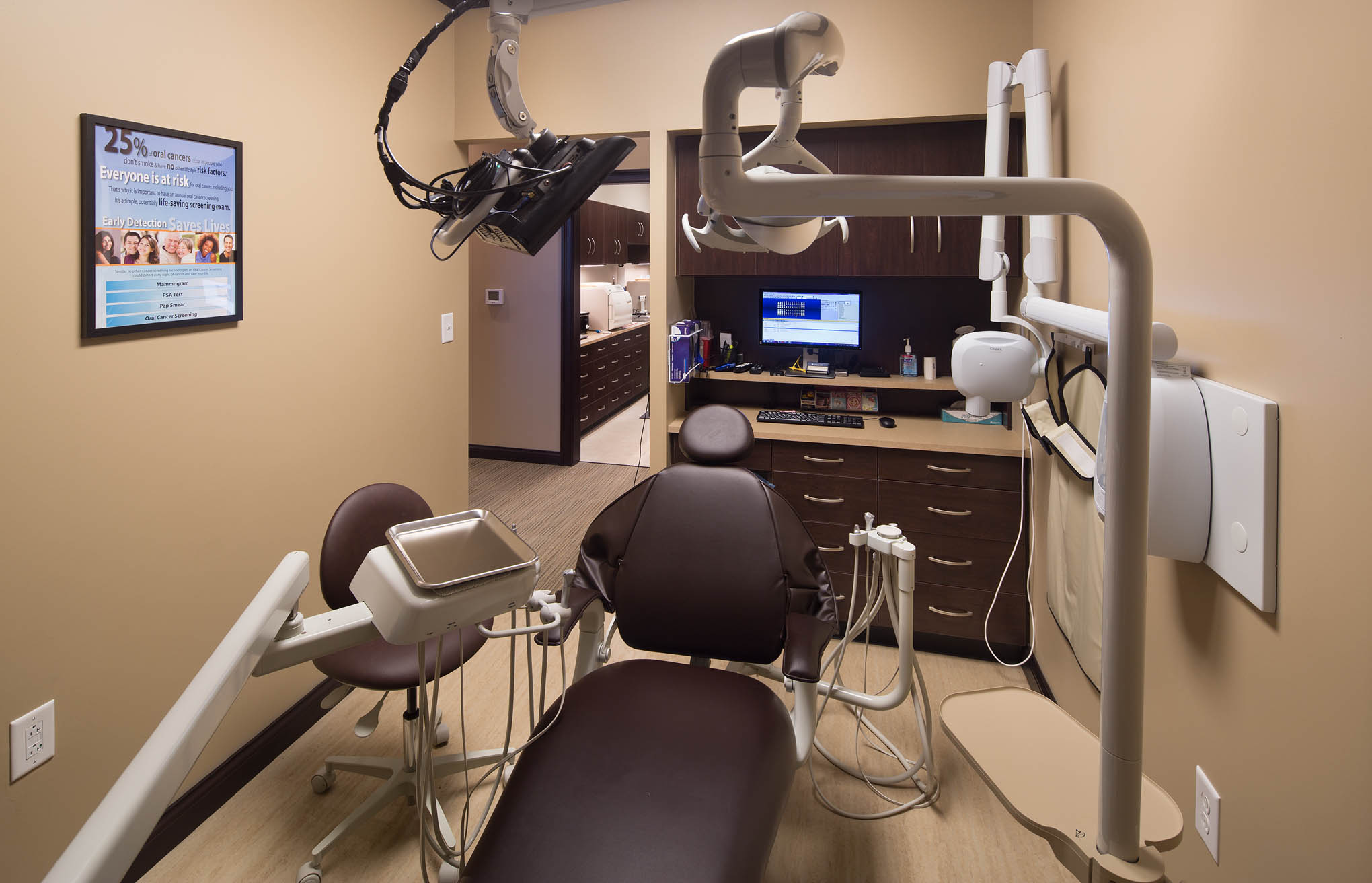 • Private treatment rooms with integrated dental technology and sound-reducing design